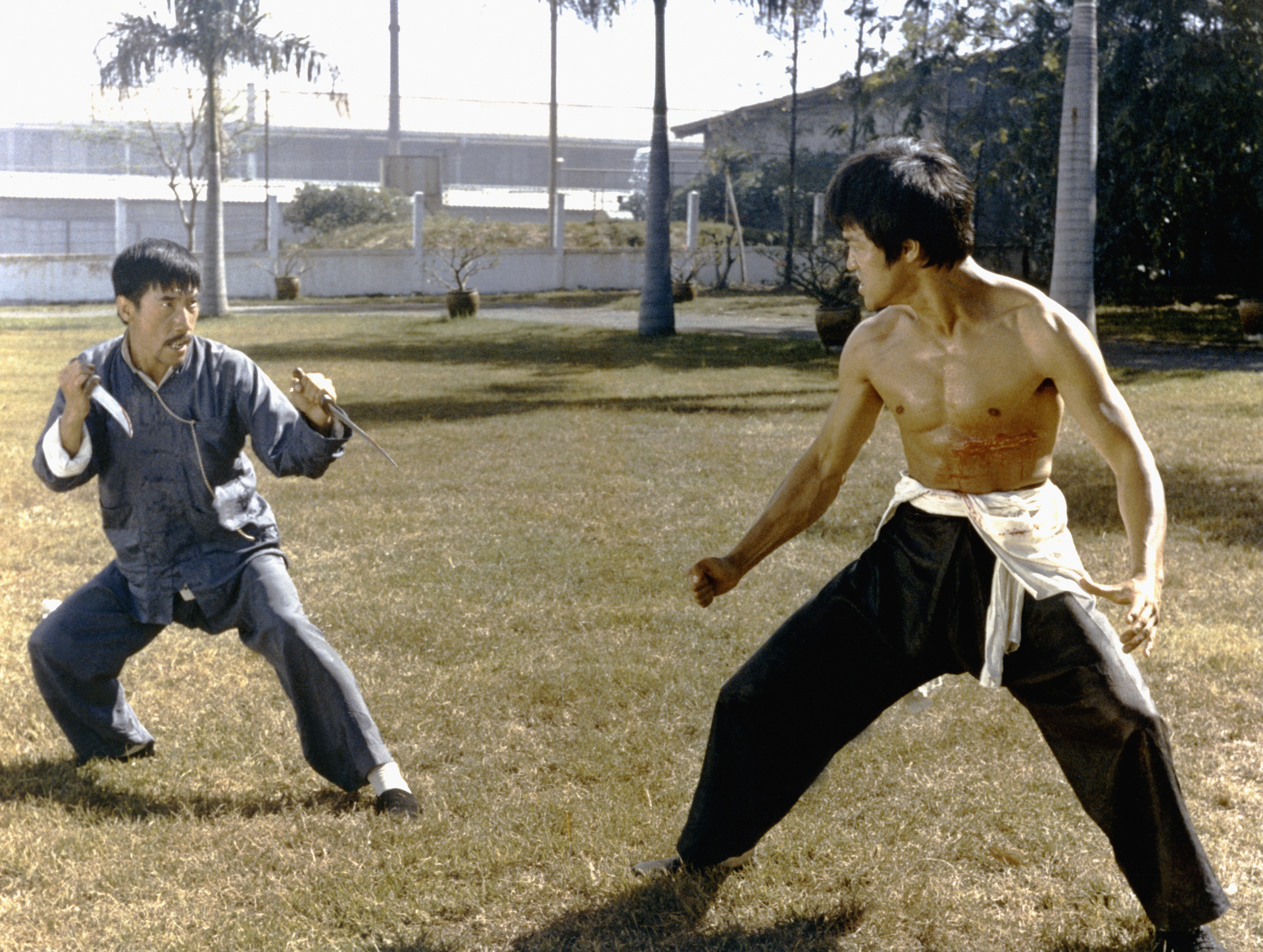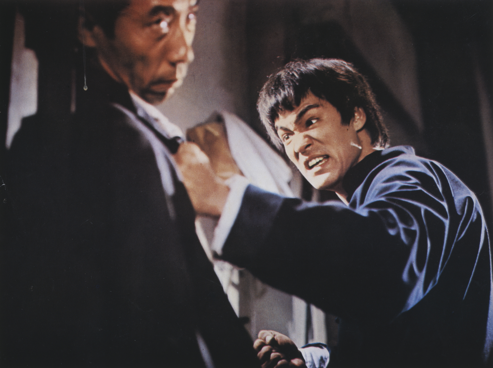 В ленте «Возвращение дракона» (1972) Ли выступил как автор сценария, режиссёр, исполнитель главной роли и постановщик боёв. Над картиной «Смертельная игра» он начал работать параллельно со «Выходом Дракона», но не успел её завершить. Фильм вышел в 1978 году, сохранившиеся съёмки с участием актёра заняли около получаса экранного времени / Кадр из кинокартины «Смертельная игра»