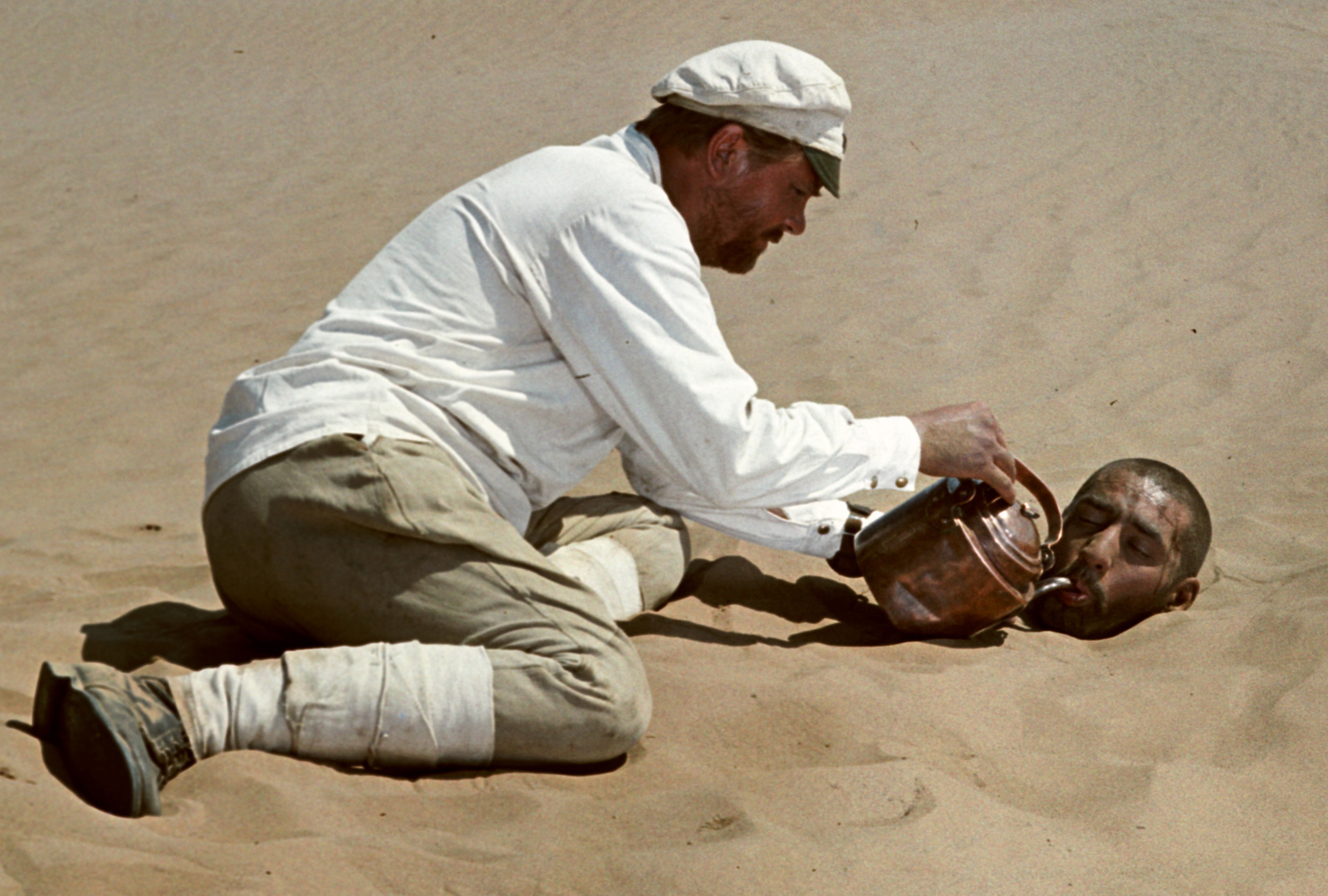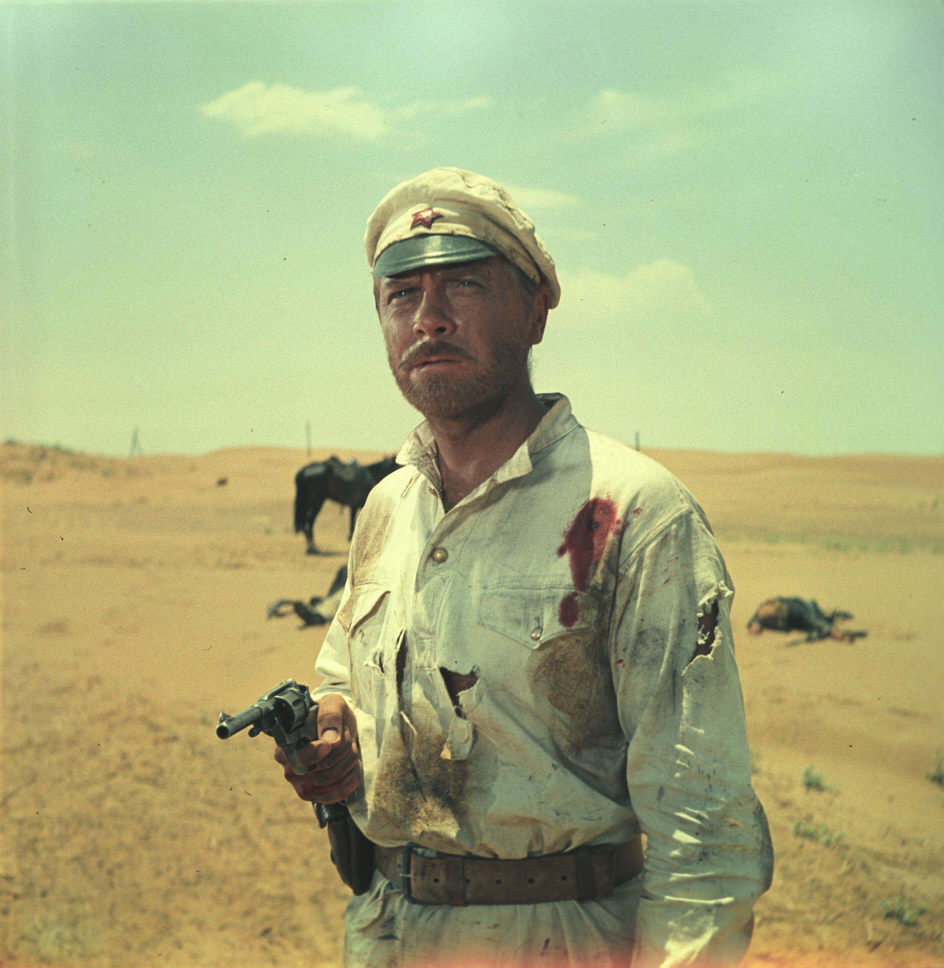 Первоначально на эту роль был выбран другой исполнитель, который получил травму перед началом съёмок. Анатолий Кузнецов согласился заменить коллегу. Эта работа стала судьбоносной, а сама картина вошла в классику советского кинематографа / Кадр из фильма «Белое солнце пустыни» (1970) / РИА Новости