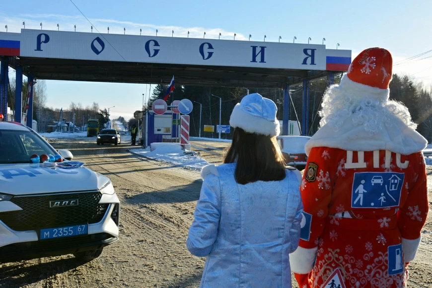 Накануне новогодних торжеств у рубежей Республики Беларусь и Российской Федерации прошла совместная акция дорожных инспекторов. Сотрудники Госавтоинспекции Витебского облисполкома и ГИБДД УМВД России по Смоленской области организовали тематическое мероприятие в праздничном формате.