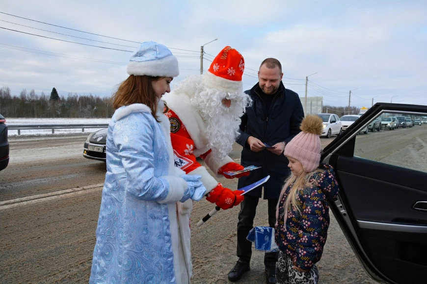 Сказочные персонажи вместе с полицейскими обращались к автомобилистам и пассажирам с поздравлениями, акцентируя важность следования дорожным правилам, бдительности за рулём и осторожности в холодный сезон.