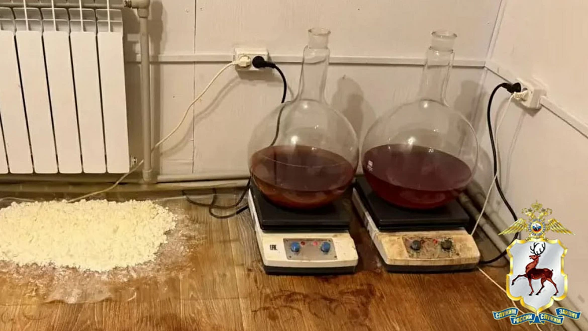 При проверке арендованного помещения правоохранительные органы обнаружили три пластиковых контейнера и пакет с веществом белого цвета, несколько десятков канистр с различными жидкостями, две магнитные мешалки, вакууматор, стеклянные колбы, средства защиты и электронные весы.