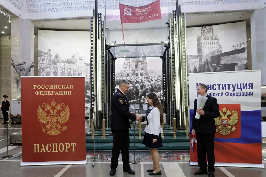 Заместитель руководителя Службы по вопросам гражданства и регистрации иностранцев Министерства внутренних дел Российской Федерации, начальник Департамента паспортного и регистрационного учета полковник полиции Дмитрий Сергиенко вручил первые документы гражданства девушкам, достигшим 14-летнего возраста. Праздничная церемония, организованная к случаю Международного женского дня, прошла в Центральном музее Вооруженных Сил Российской Федерации.